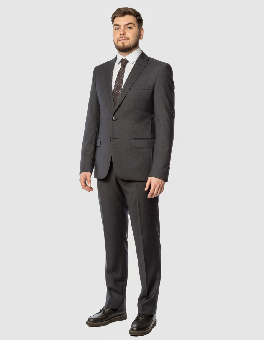 Темно-серый пиджак «Джейк» изготовлен из поливискозы, которая придает пиджаку идеальный баланс между износостойкостью, мягкостью и свободой движения. Крой Slim Fit идеально сидит по телу, подчёркивает силуэт, не стесняя движения. Идеален для тех, кто хочет выглядеть ухоженно и комфортно. Пиджак можно сочетать с классическими брюками «Джейк». Гладкая ткань без рисунка, это чистый, сдержанный фон, на котором вспушка на лацканах и карманах играет роль тонкого акцента. Добавляет текстуру, глубину и намёк на детализированный дизайн без лишнего пафоса. Образ можно завершить белой бежевой или светло серой рубашкой с акцентным галстуком.